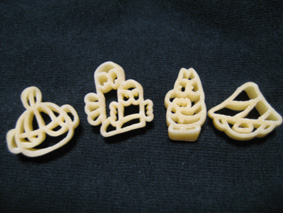 ムーミンキャラクターの形のショートパスタだよ。