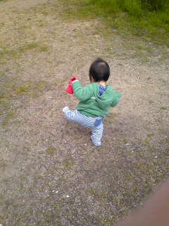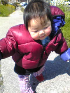 ↑うんしょっと。おそと歩きの練習中。