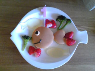 1歳のお誕生日はホットケーキをつくってお祝いしました。