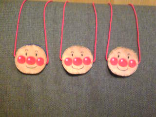 ↓ちびっ子のためアンパンマン首飾り作る。